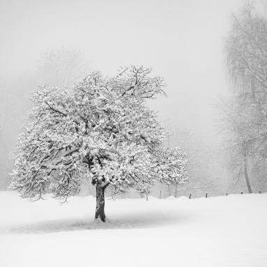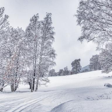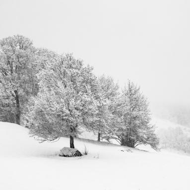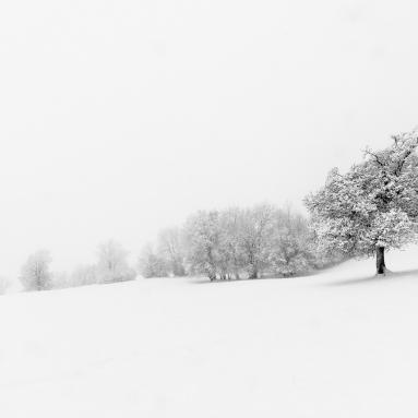 Je privilégie le moment où la neige tombe avec son ambiance ouatée et son silence qui favorisent le sentiment de solitude. La neige et la faible visibilité estompent les traces humaines; barrières, lignes aériennes et chalets disparaissent.