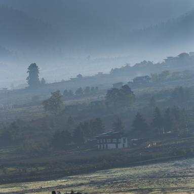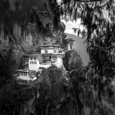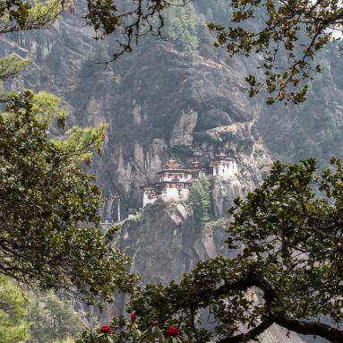 La vallée de Paro à l'ouest du Bhoutan est le point d'entrée du Bhoutan avec l'unique aéroport international, l'un des plus audacieux atterrissages du monde: l'approche se fait en zigzag, les ailes à raz les montagnes et le pilote ne peut aligner son avion sur la piste qu'à la dernière minute. Dans cette vallée se trouve l'un des plus beaux monastères du Bhoutan, accroché dans une falaise 800 m au-dessus de la vallée: la Tanière du Tigre, Taktshang.