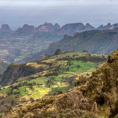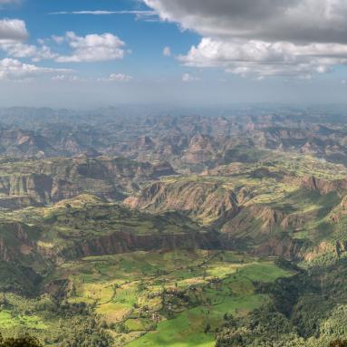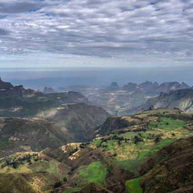 Les hauts plateaux éthiopiens, situés entre 2'000 et 3'500 m d'altitude, sont fertiles. L'agriculture traditionnelle, non mécanisée, et l'élevage y sont présents à perte de vue. Ils sont surtout exploité pour des céréales de toutes sortes, dont le teff à partir duquel est faite l'injera, un galette fermentée, base de la nourriture éthiopienne.