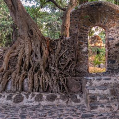 L'architecture religieuse est caractérisée par un grand nombre d'églises taillées dans la roche entre le IVe et le XIIIe siècle, de toutes les formes et de tous les styles, souvent couvertes de peintures, parfois avec des bas-reliefs. Quelques-unes ont la particularité d'avoir les façades complètement dégagées de la roche, par exemple Bete Giyorgis à Lalibela (celle en forme de croix).
