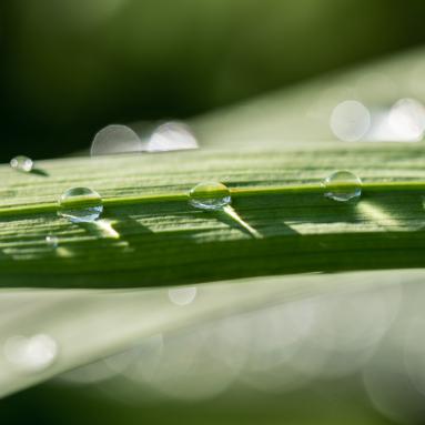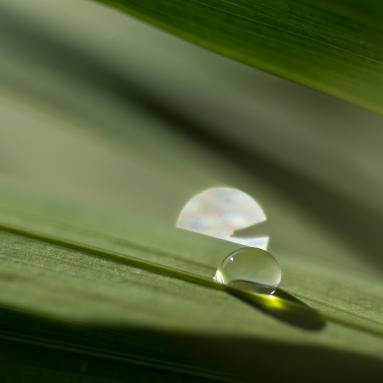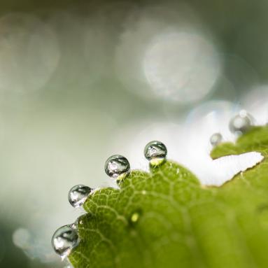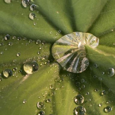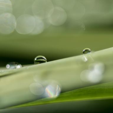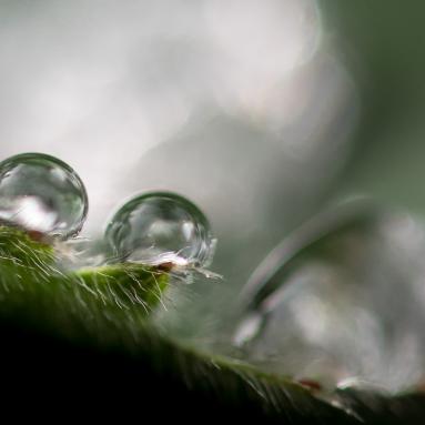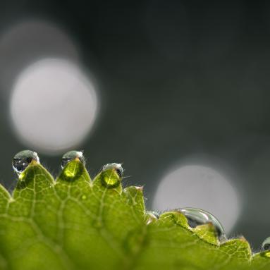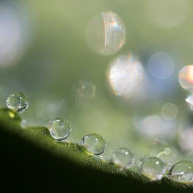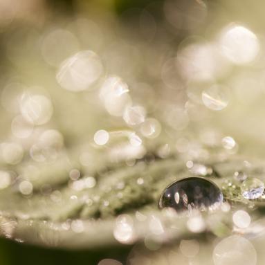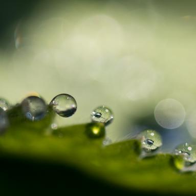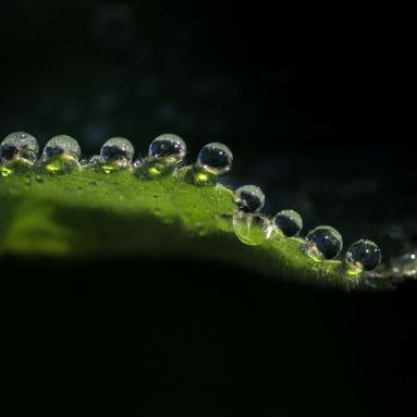 La plupart de ces photos ont été prises sur l'alchémille et le crocosmia qui sont deux plantes retenant particulièrement bien les gouttes de pluie. Sur le crocosmia, les gouttes s'évaporent vite. Par contre l'alchémille les conserve longtemps grâce à une multitude de petits poils. De plus, les gouttelettes, de toutes les tailles, y sont beaucoup plus nombreuses et plus serrées, et elles s'alignent souvent sur les nervures des feuilles.