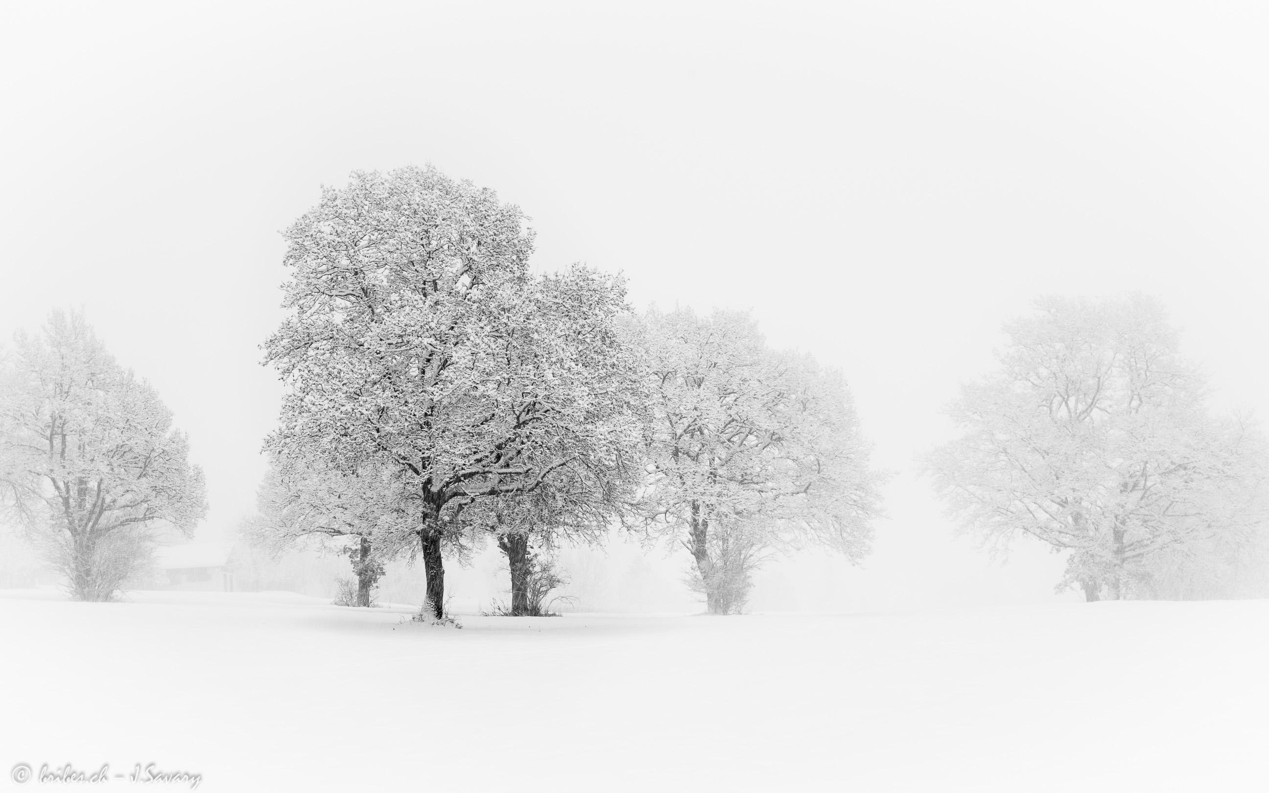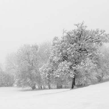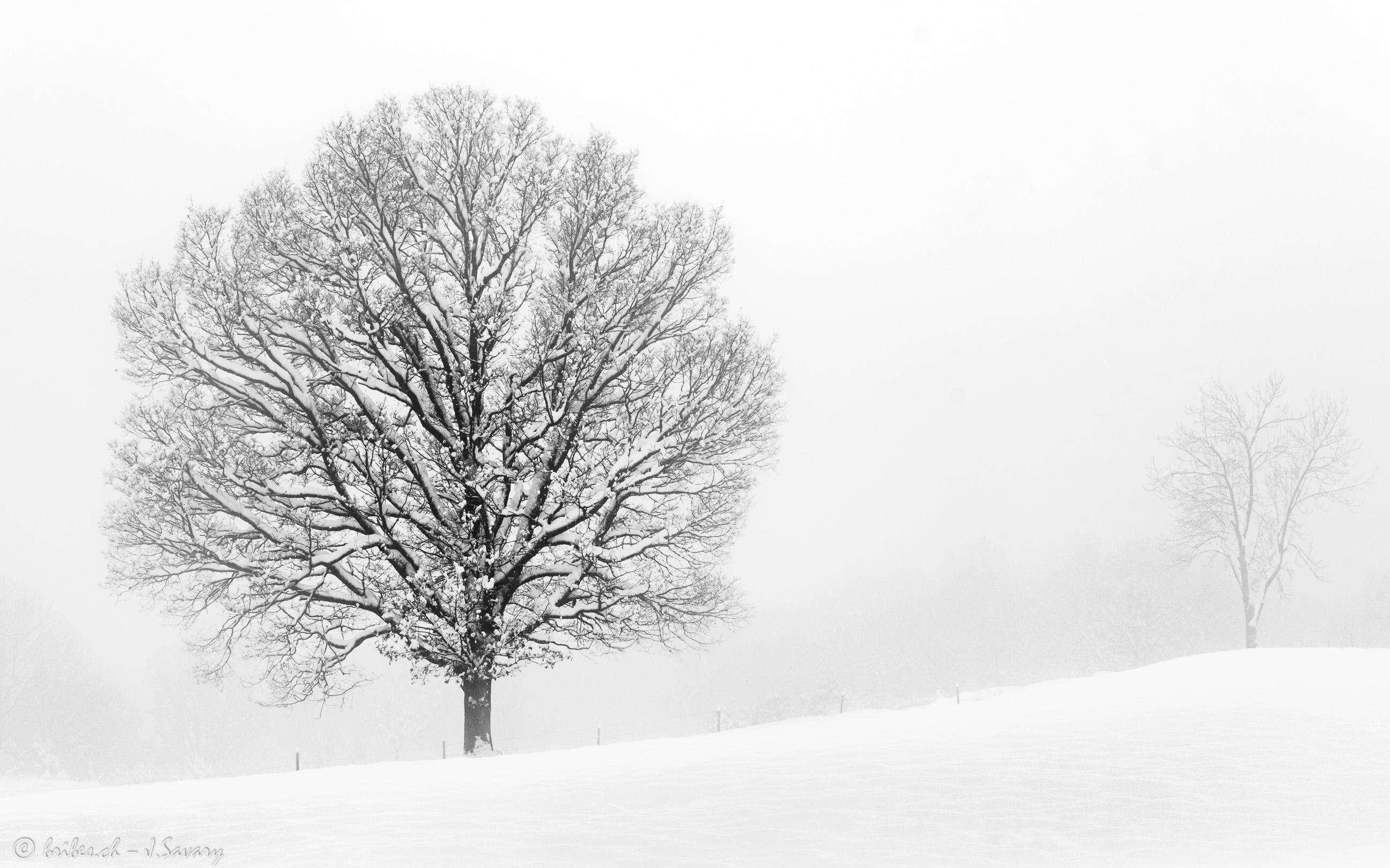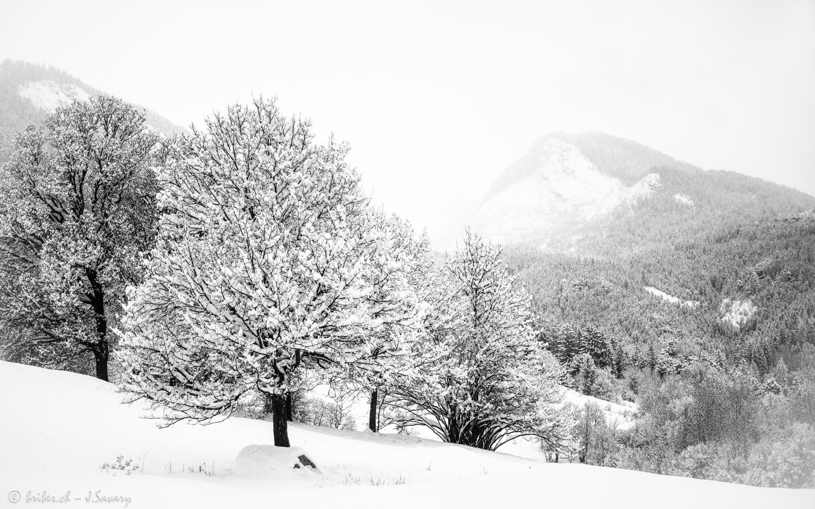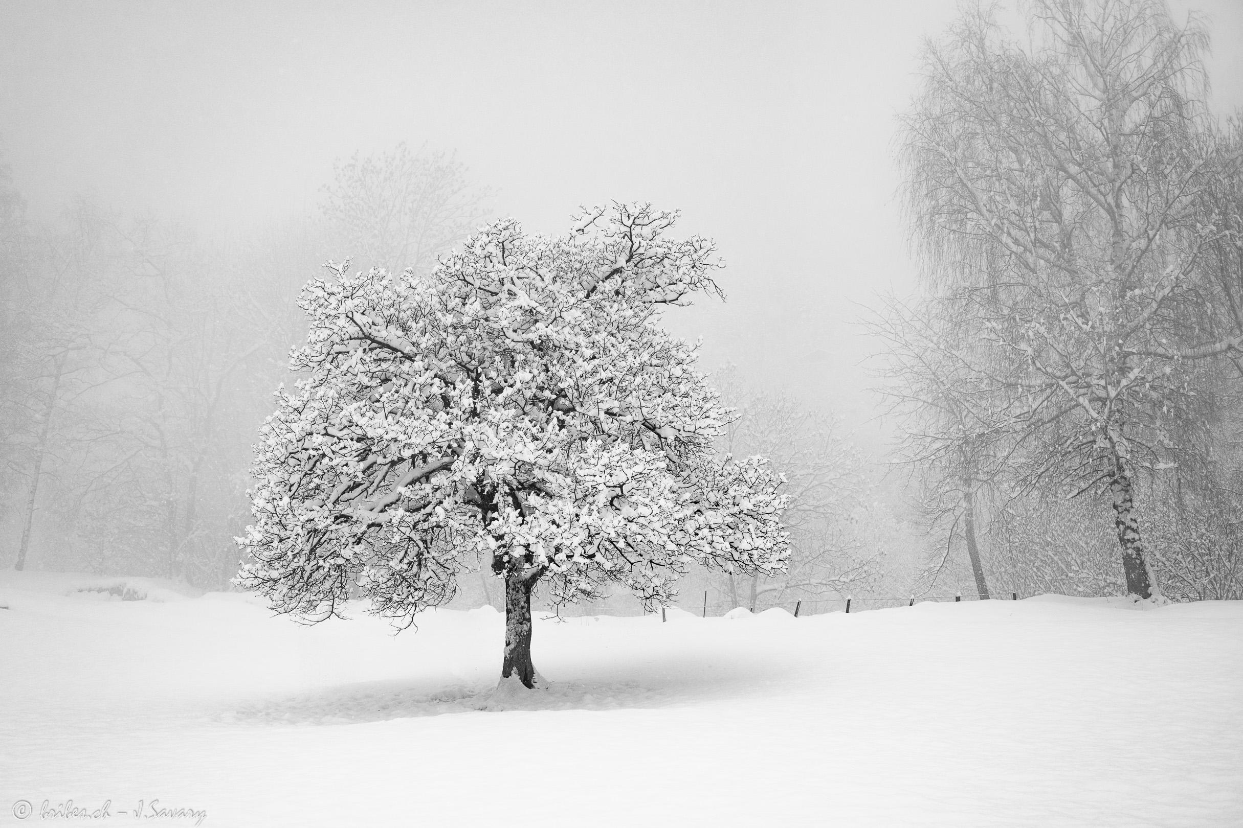 Je privilégie le moment où la neige tombe avec son ambiance ouatée et son silence qui favorisent le sentiment de solitude. La neige et la faible visibilité estompent les traces humaines; barrières, lignes aériennes et chalets disparaissent.
