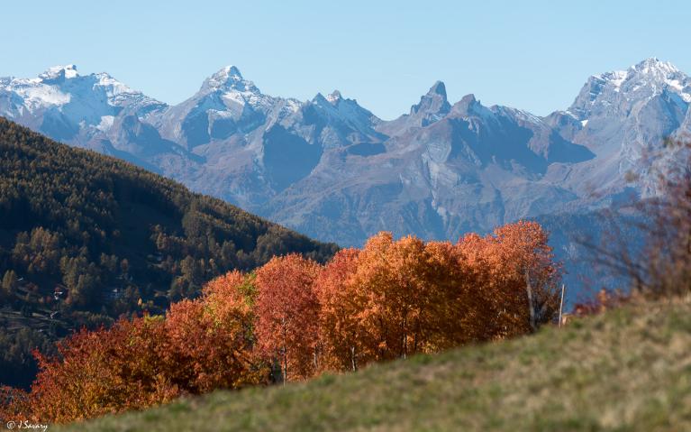 L'automne 2016 fut particulièrement somptueux avec les cerisiers incandescents. Les vignes ont déployé toutes les nuances du vert au bordeaux en passant par le jaune et l'orange. Les montagnes portent des écharpes de mélèzes dorés contrastant avec le vert sombre des sapins.