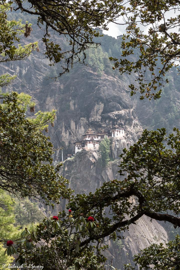 La vallée de Paro à l'ouest du Bhoutan est le point d'entrée du Bhoutan avec l'unique aéroport international, l'un des plus audacieux atterrissages du monde: l'approche se fait en zigzag, les ailes à raz les montagnes et le pilote ne peut aligner son avion sur la piste qu'à la dernière minute. Dans cette vallée se trouve l'un des plus beaux monastères du Bhoutan, accroché dans une falaise 800 m au-dessus de la vallée: la Tanière du Tigre, Taktshang.