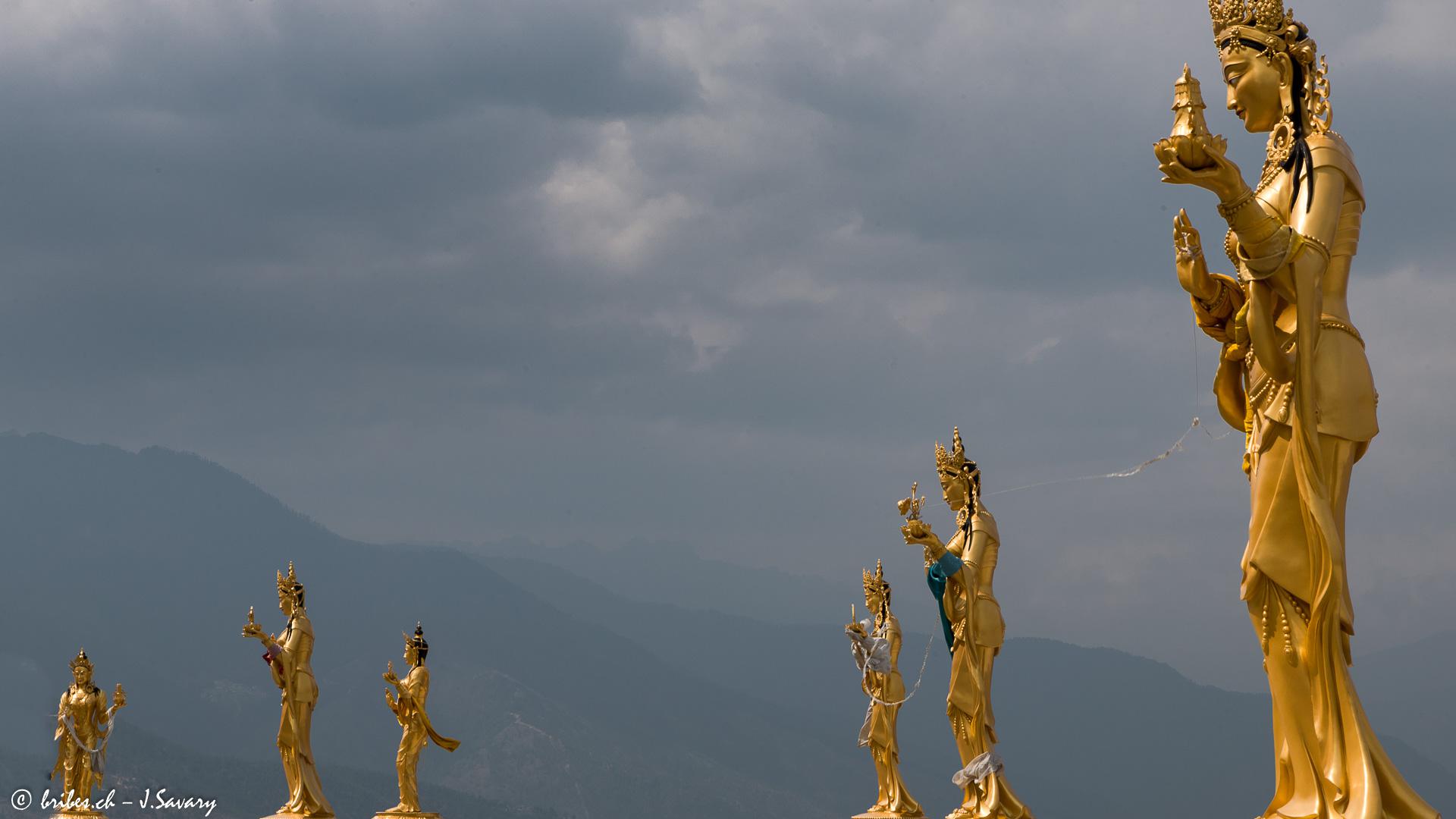 A Timphou, la capitale, se trouve le dzong (forteresse religieuse et administrative) de Trashi Chho, gigantesque car c'est celui du roi qui abrite l'actuel gouvernement du Bhoutan. Au sud, Buddha Dordenma est un temple moderne où se trouve un bouddha doré de 52 m de hauteur, le plus grand du monde.