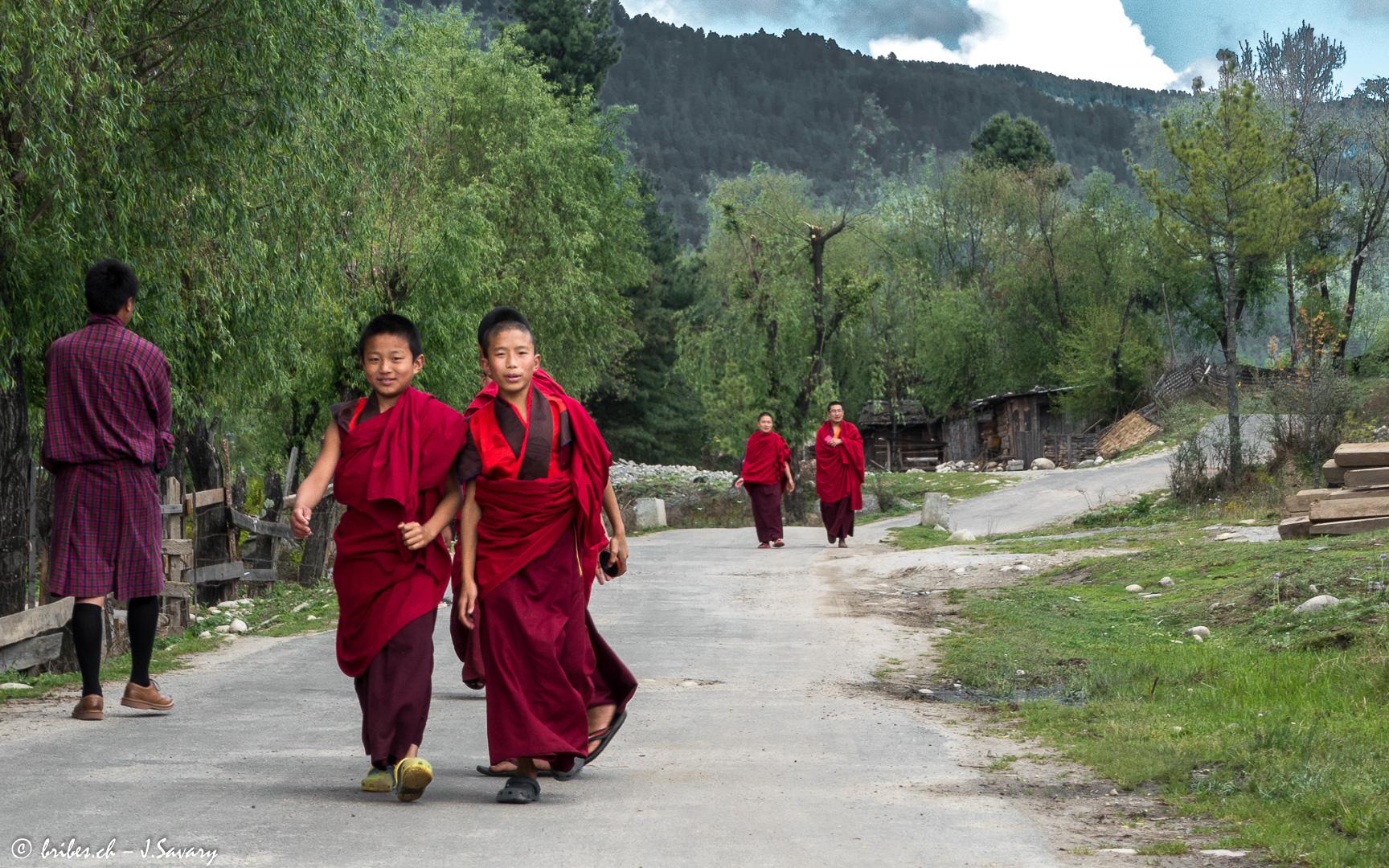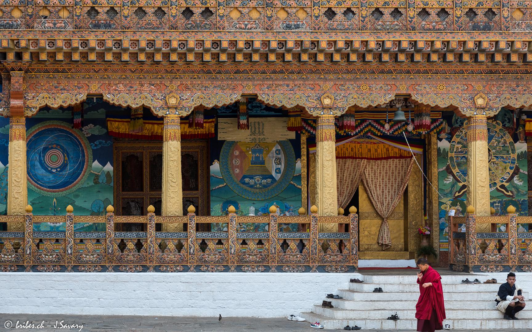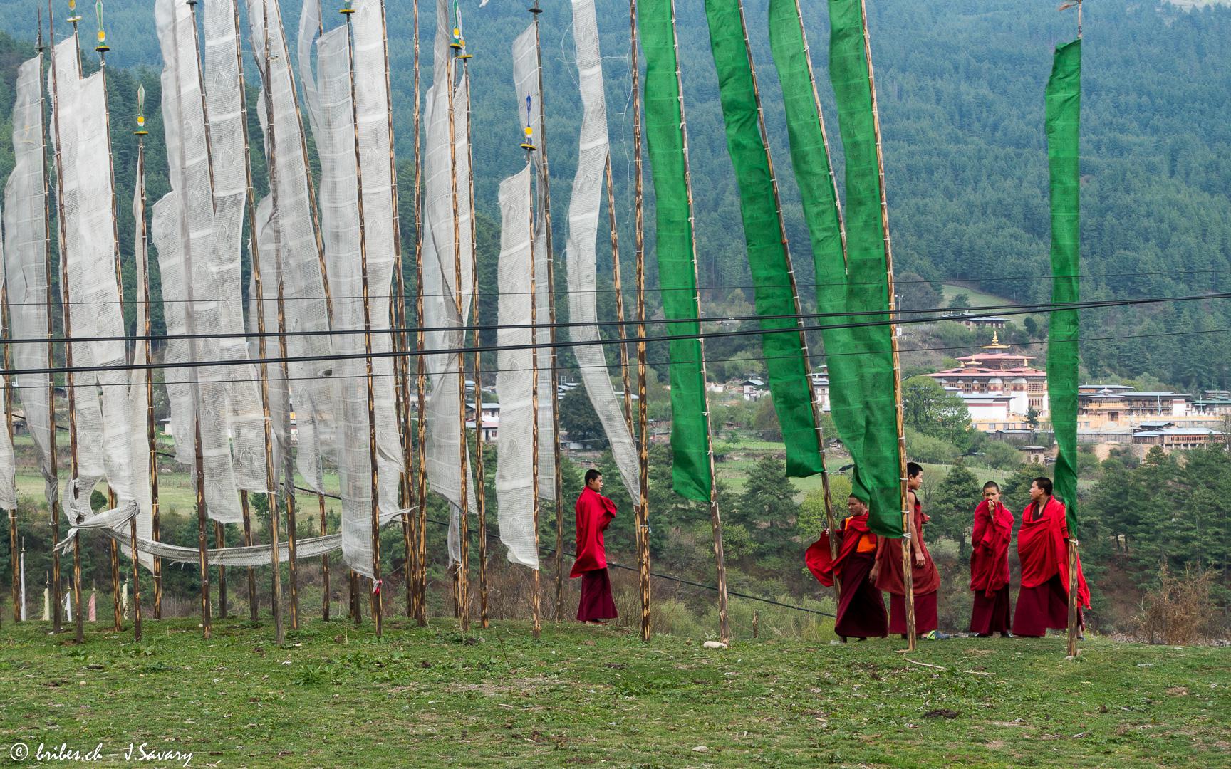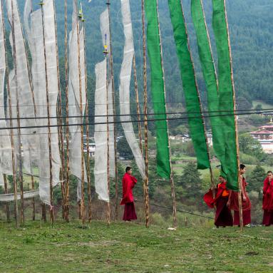 Le Bhoutan est un pays qui est longtemps resté à l'écart des influences du reste du monde. Devenu récemment une monarchie constitutionnelle, le respect des traditions, le développement durable et l'écologie sont des principes fondamentaux. Le bouddhisme d'origine tibétaine imprègne tout et est présent partout. Pratiqué de manière très "souple", il ne semble pas trop peser, par exemple les moines sont exclus de la vie politique. L'un des effets positifs du bouddhisme est la préservation de l'environnement puisque chasse et pêche sont interdits. Autre exemple, il n'est pas possible de monter au-delà de 6'000 m d'altitude pour ne pas déranger les dieux.