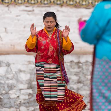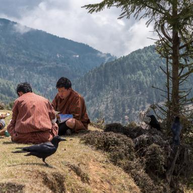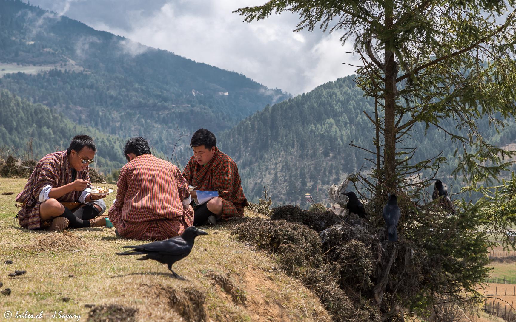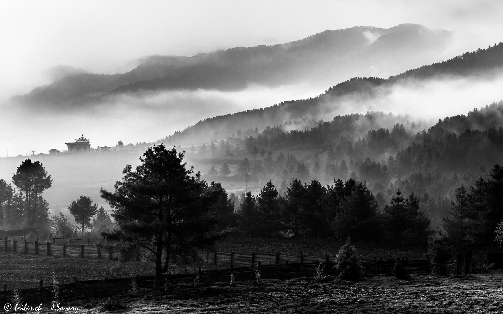 Le Bhoutan est un pays qui est longtemps resté à l'écart des influences du reste du monde. Devenu récemment une monarchie constitutionnelle, le respect des traditions, le développement durable et l'écologie sont des principes fondamentaux. Le bouddhisme d'origine tibétaine imprègne tout et est présent partout. Pratiqué de manière très "souple", il ne semble pas trop peser, par exemple les moines sont exclus de la vie politique. L'un des effets positifs du bouddhisme est la préservation de l'environnement puisque chasse et pêche sont interdits. Autre exemple, il n'est pas possible de monter au-delà de 6'000 m d'altitude pour ne pas déranger les dieux.