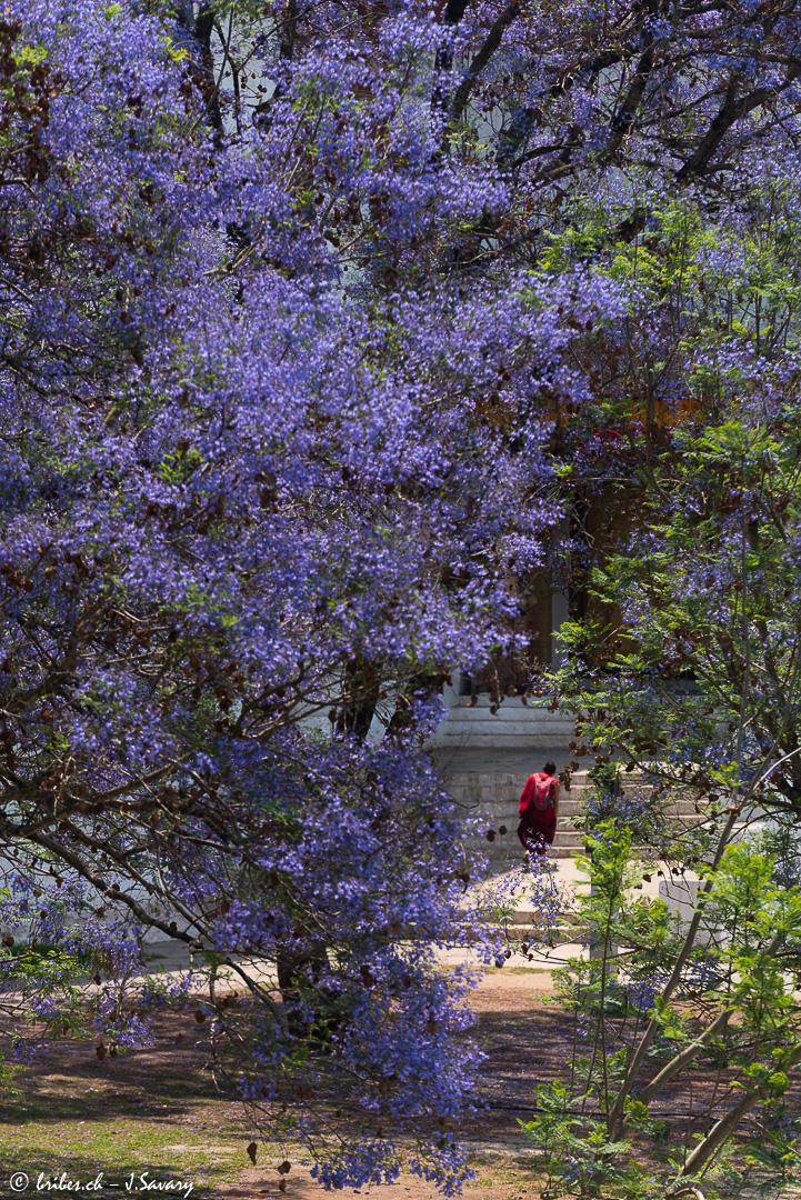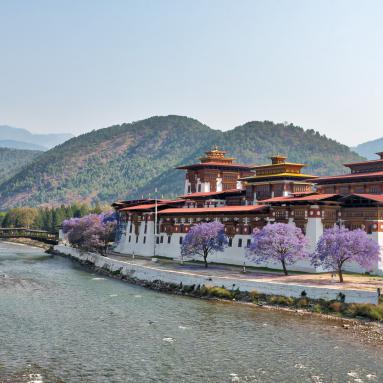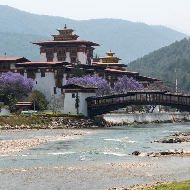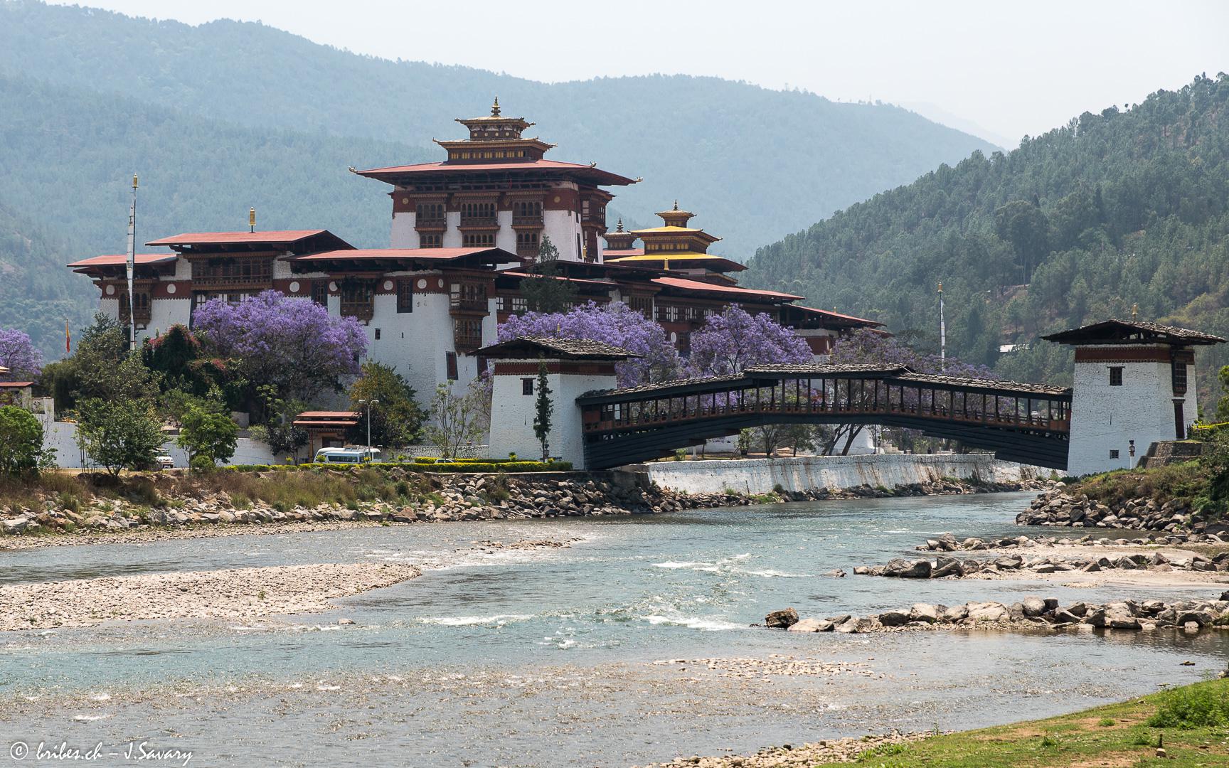 La vallée de Punakha, au centre est l'une des plus basses du Bhoutan à 1'200 m d'altitude. Le Dzong de Punakha, fondé en 1637, est probablement le plus beau du Bhoutan par son architecture, mais aussi par son site à la confluence de deux rivières et entouré de jacarandas en fleurs. Aux alentours, les ballades dans les rizières sont pleines de charme et l'on peut y découvrir toutes sortes de fleurs, dont des orchidées.