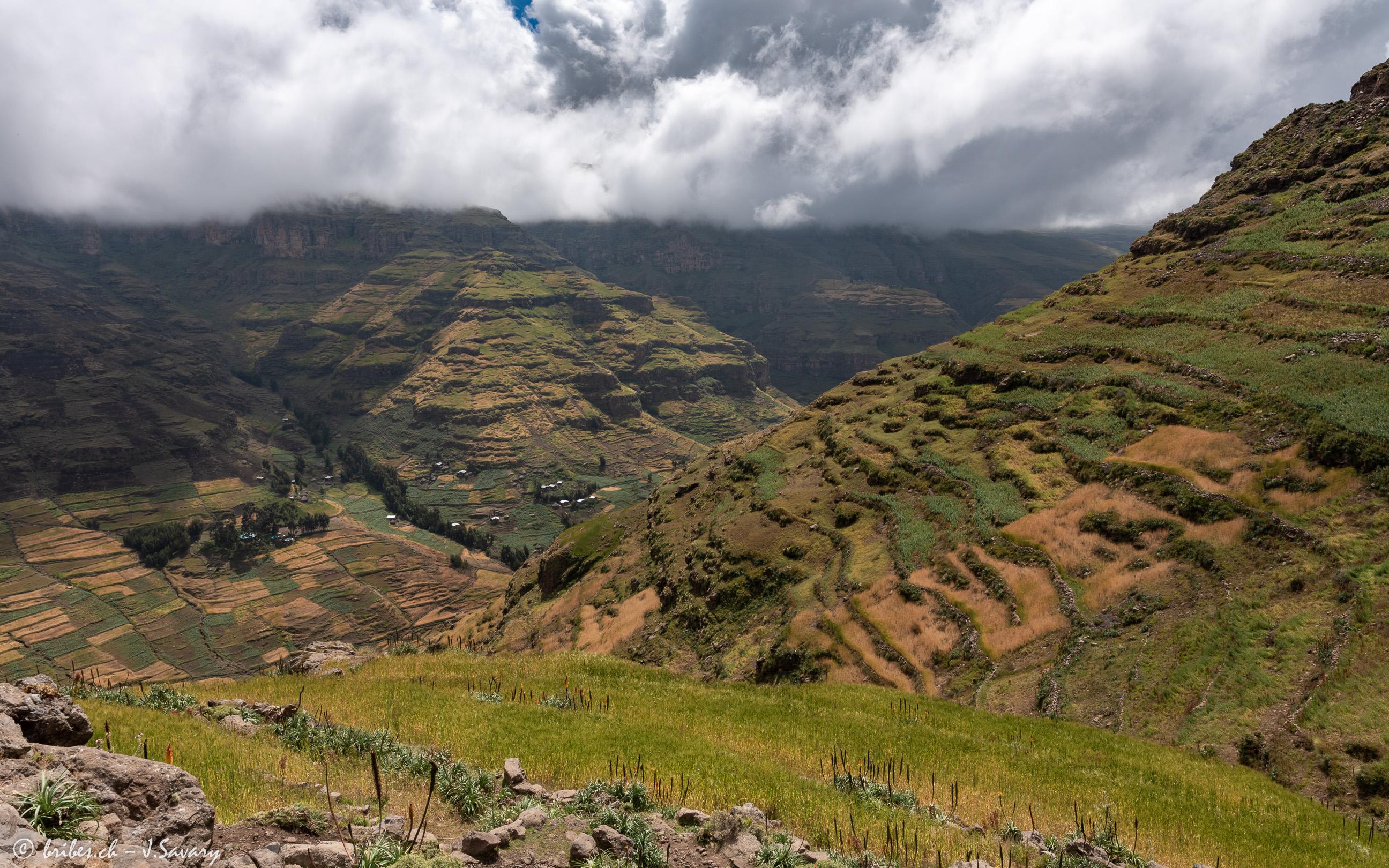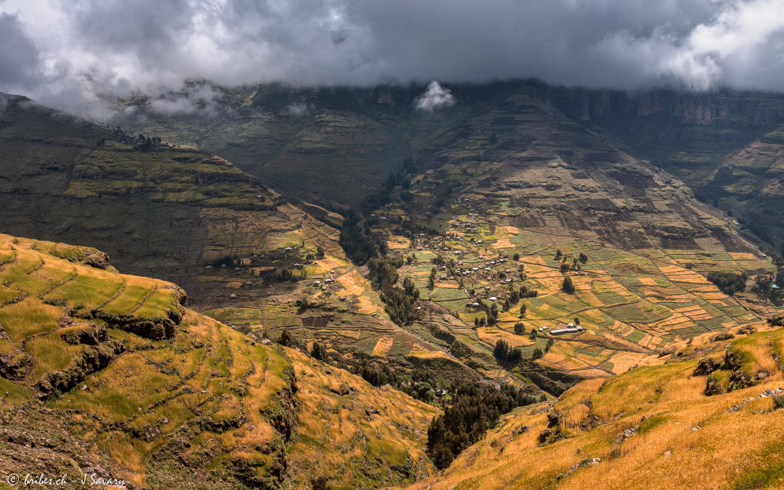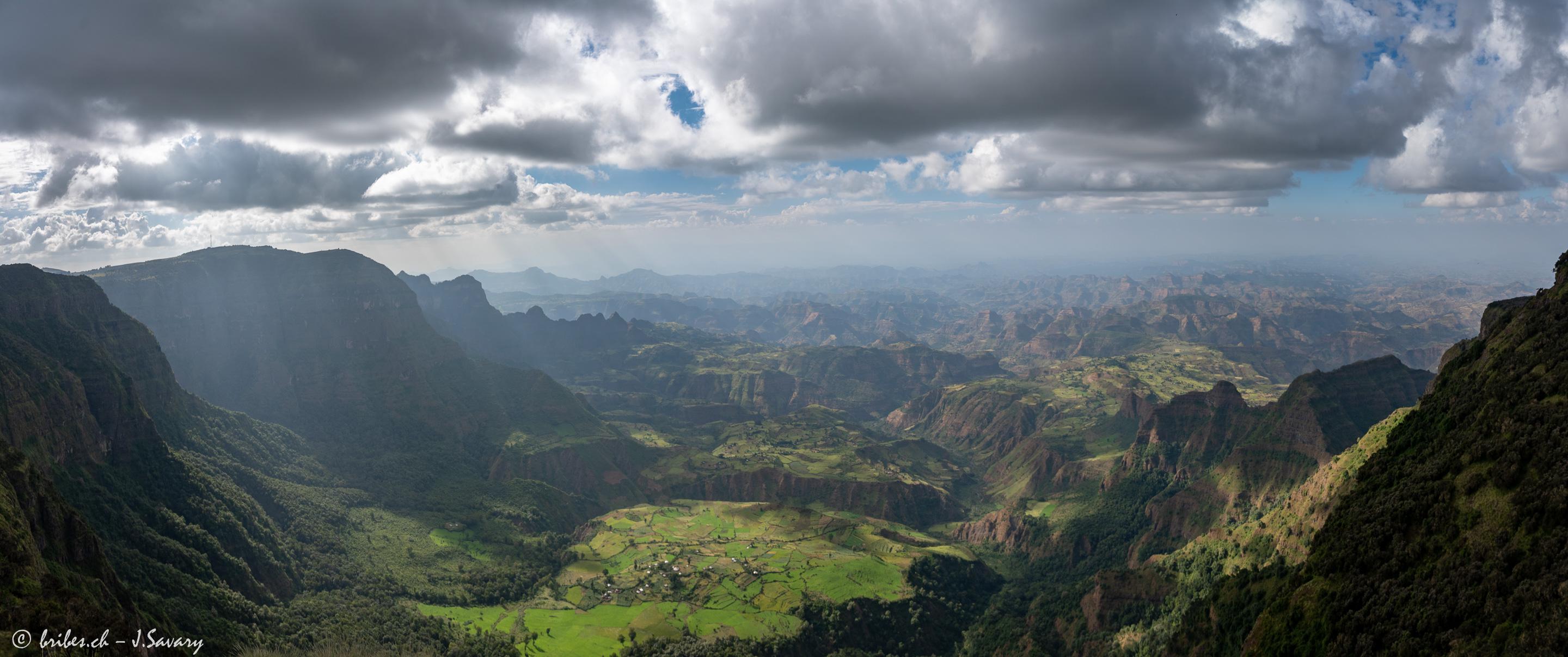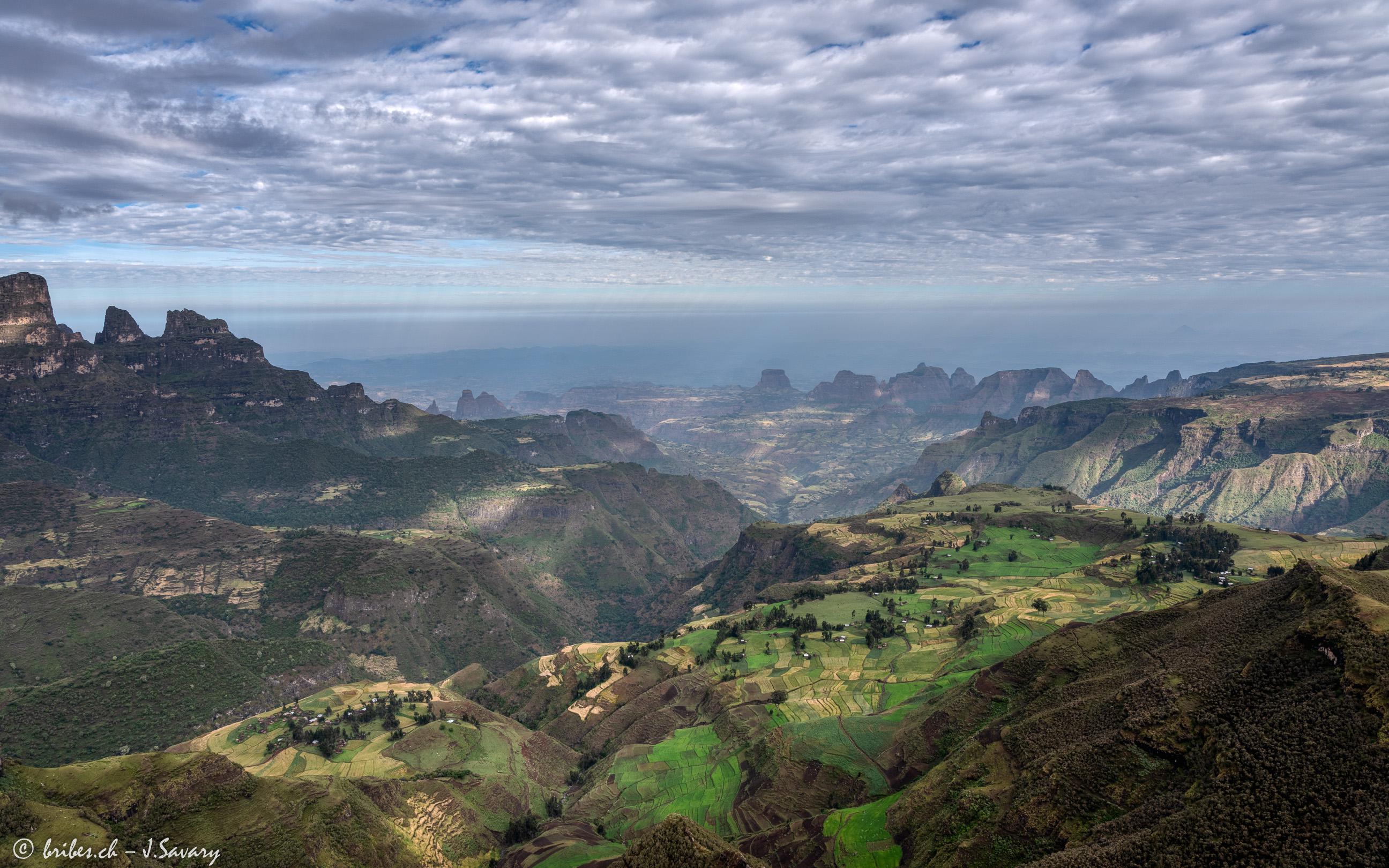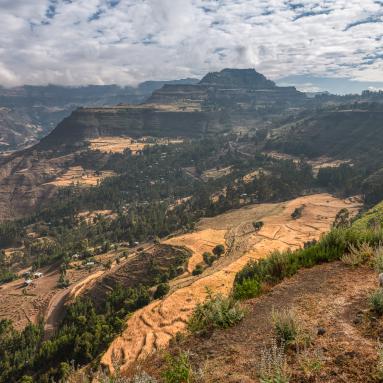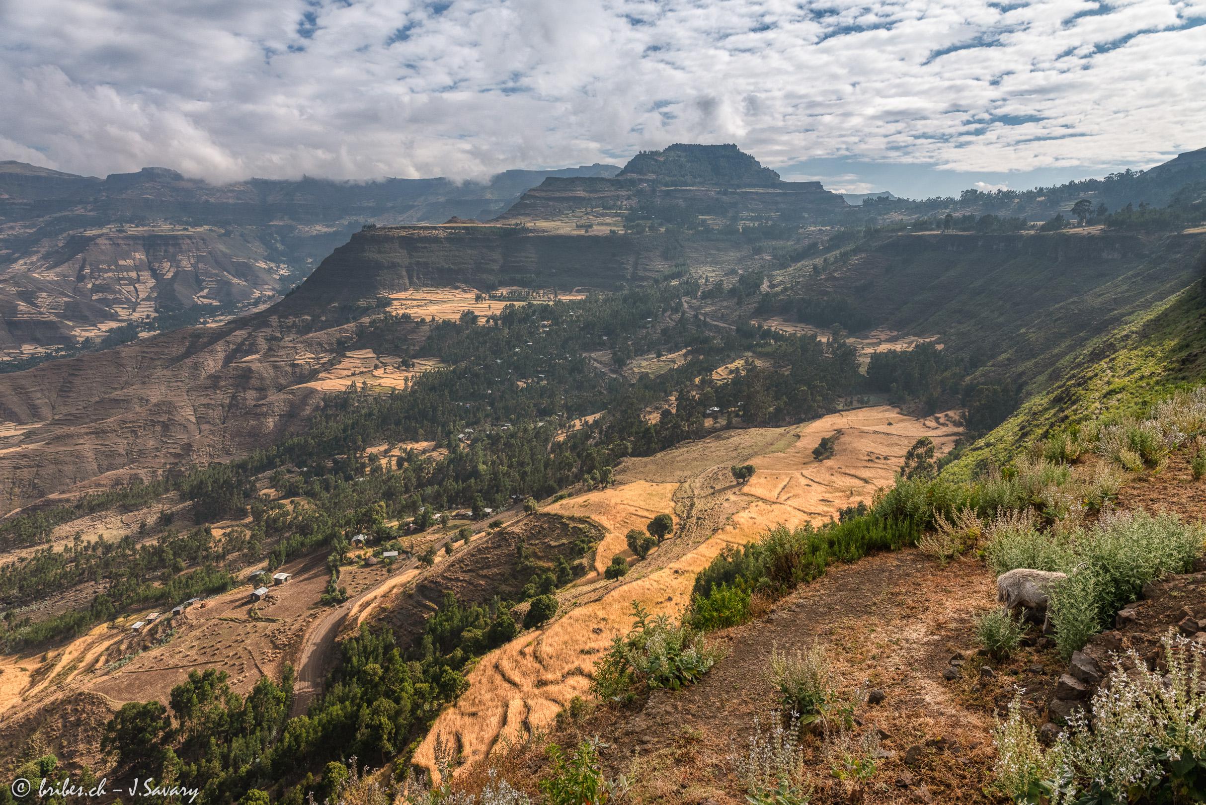Les hauts plateaux éthiopiens, situés entre 2'000 et 3'500 m d'altitude, sont fertiles. L'agriculture traditionnelle, non mécanisée, et l'élevage y sont présents à perte de vue. Ils sont surtout exploité pour des céréales de toutes sortes, dont le teff à partir duquel est faite l'injera, un galette fermentée, base de la nourriture éthiopienne.