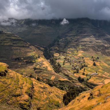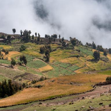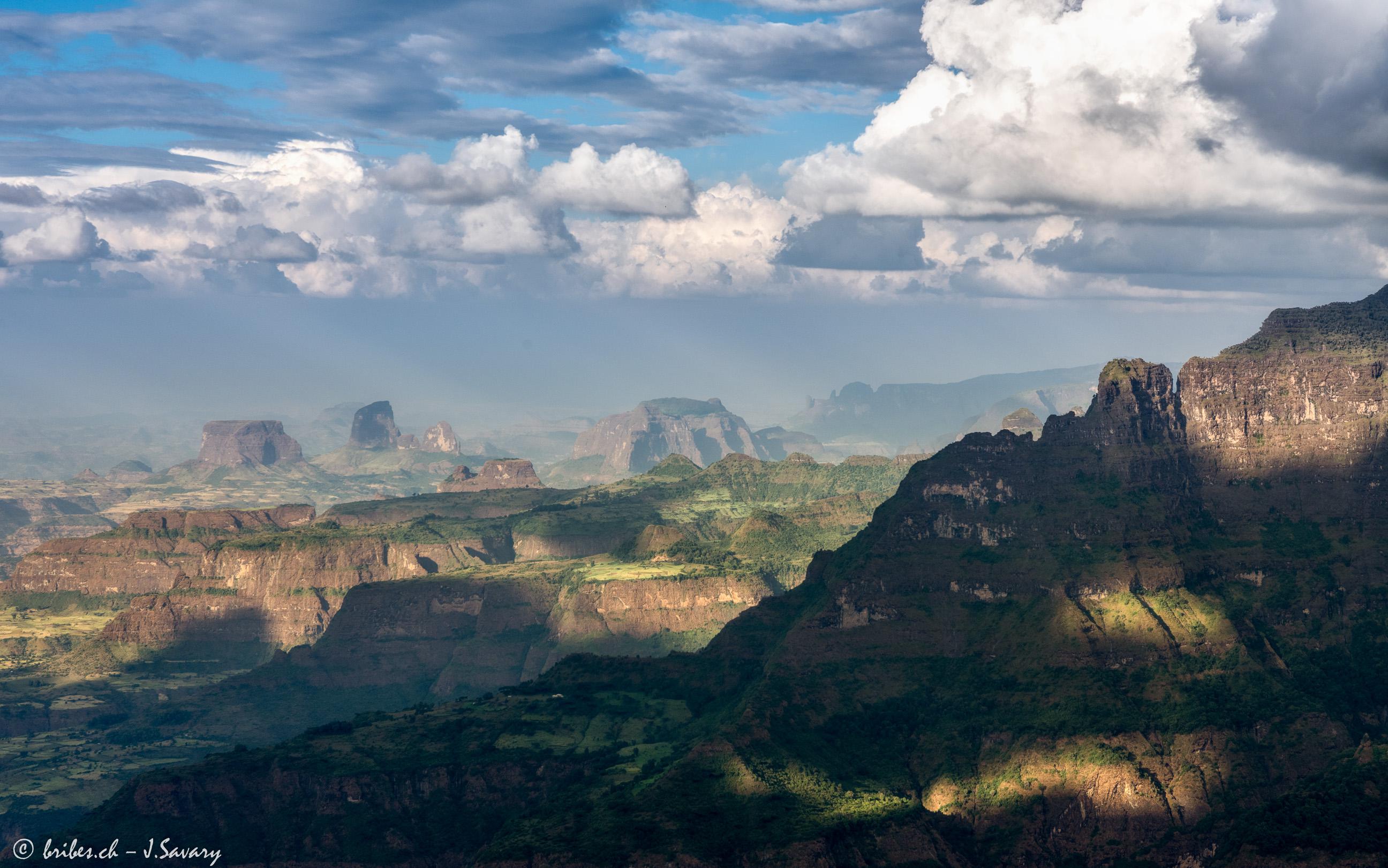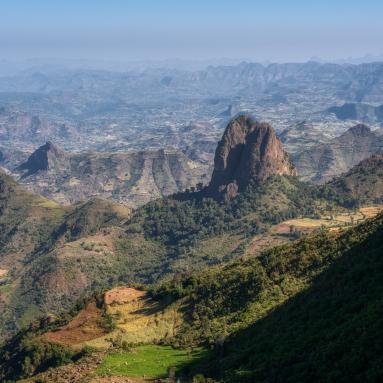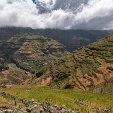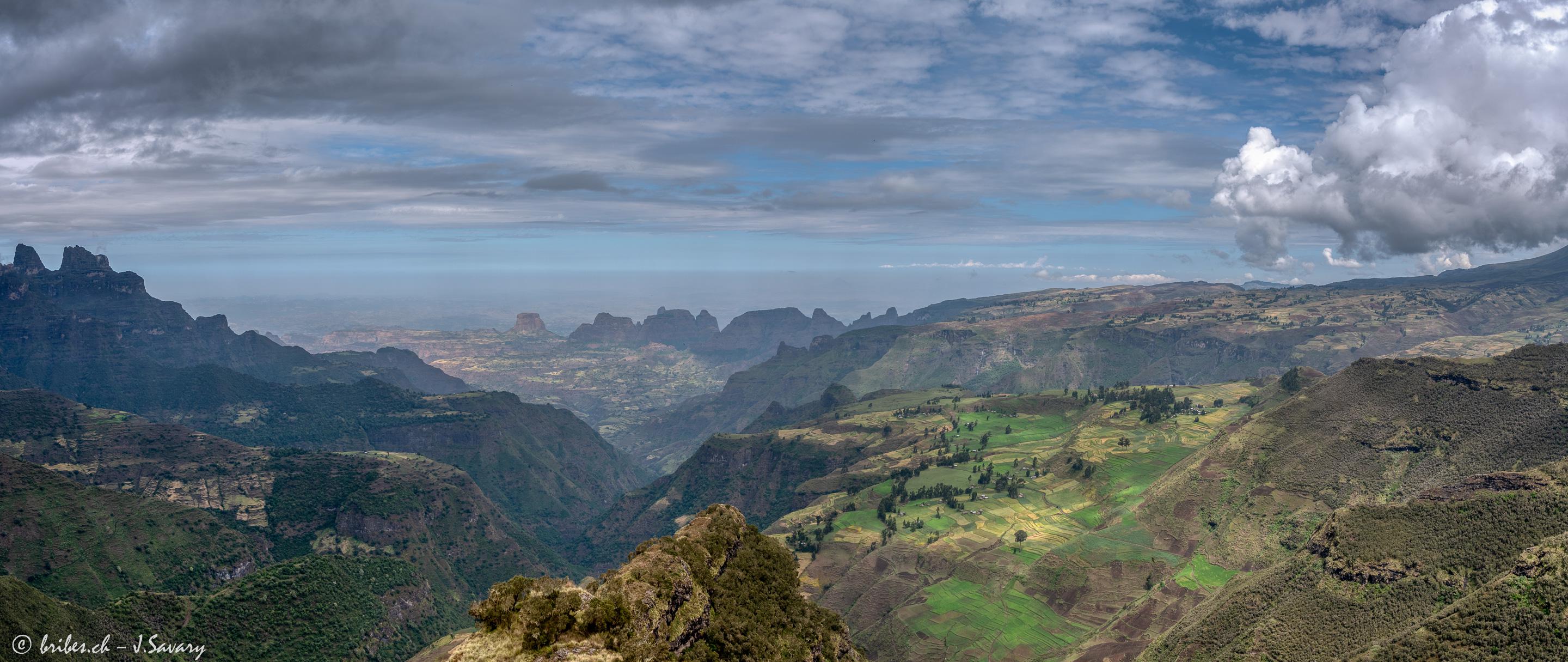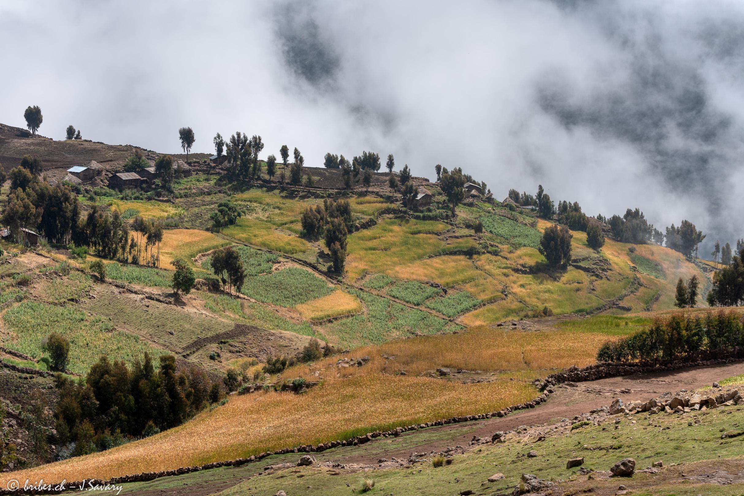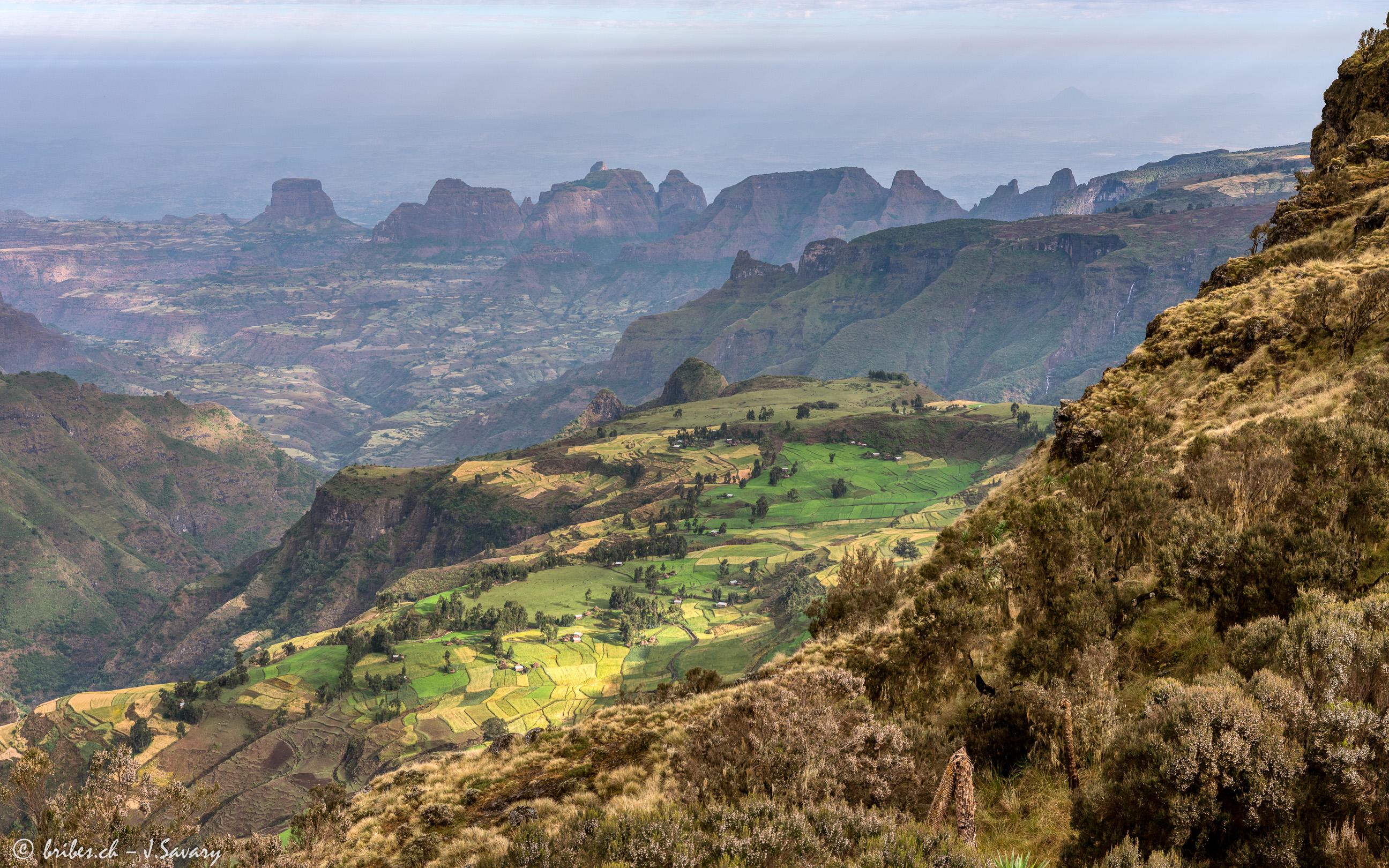Les hauts plateaux éthiopiens, situés entre 2'000 et 3'500 m d'altitude, sont fertiles. L'agriculture traditionnelle, non mécanisée, et l'élevage y sont présents à perte de vue. Ils sont surtout exploité pour des céréales de toutes sortes, dont le teff à partir duquel est faite l'injera, un galette fermentée, base de la nourriture éthiopienne.
