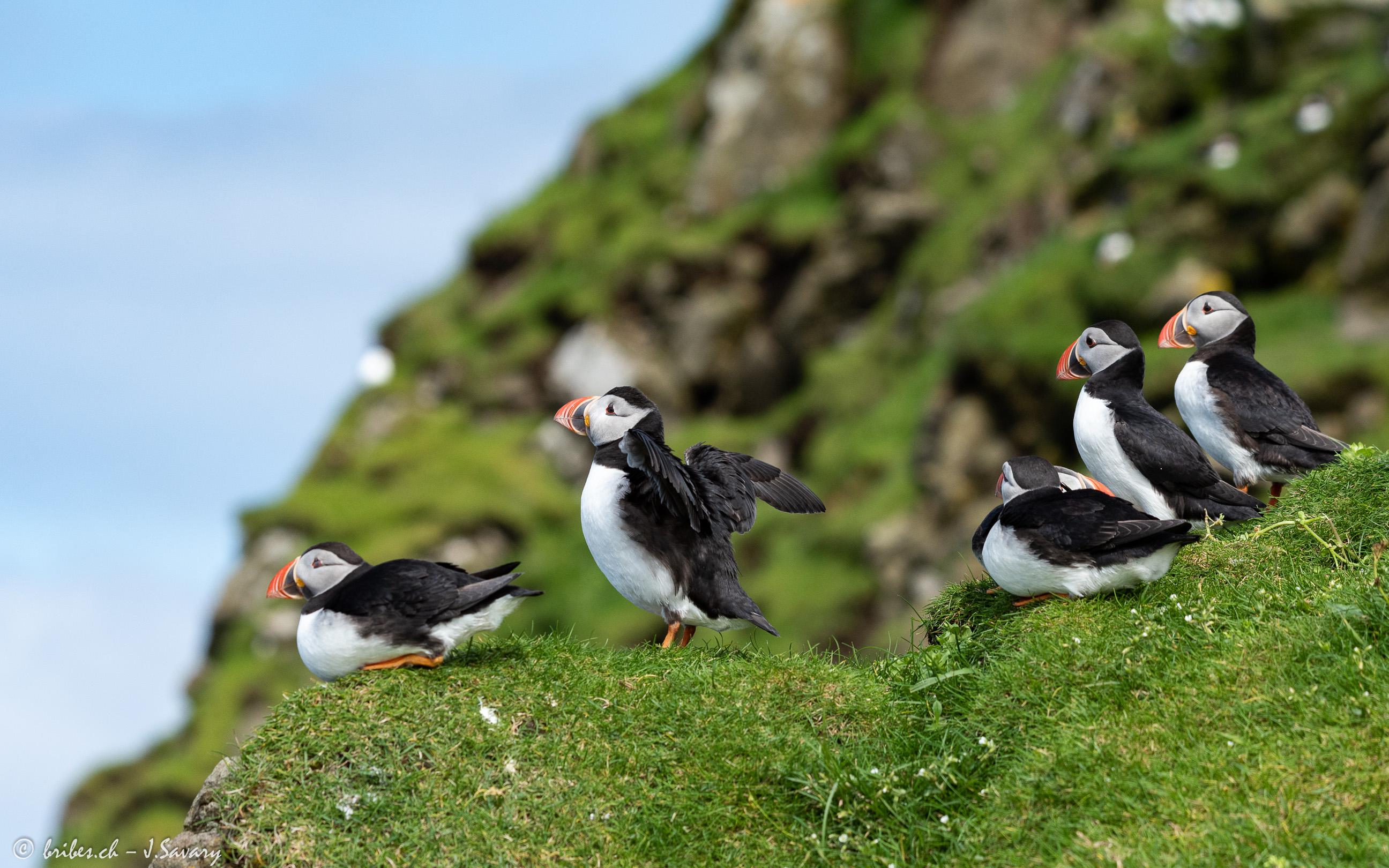 Les îles Féroé sont très riches en oiseaux marins de toutes sortes. Ce qu'il ne faut absolument pas manquer: l'île de Mykines où se trouvent de très grandes colonies de diverses espèces. Un conseil: réservez le passage en bateau à l'avance sur internet. Non seulement, je suis passé en force sans réservation, mais en plus j'ai eu la chance d'y avoir du soleil et une lumière splendide, ce qui est tout sauf évident dans ce pays.