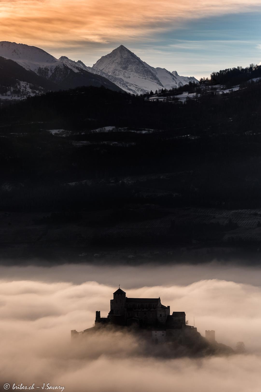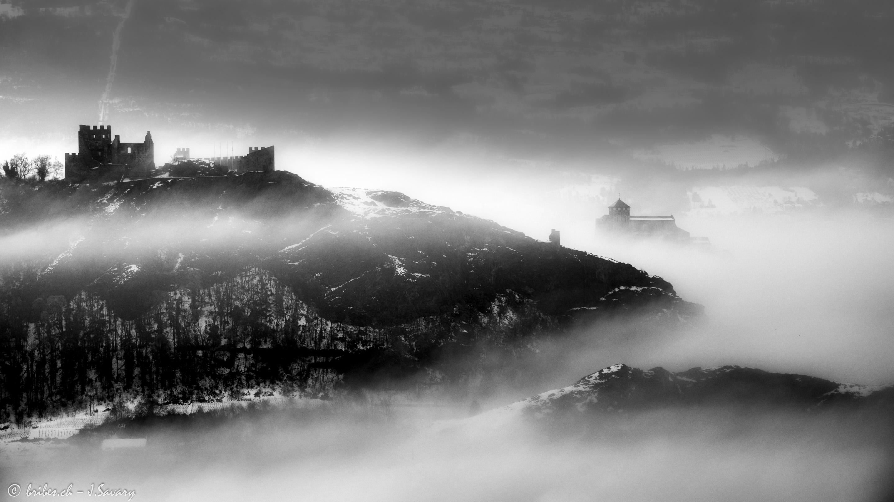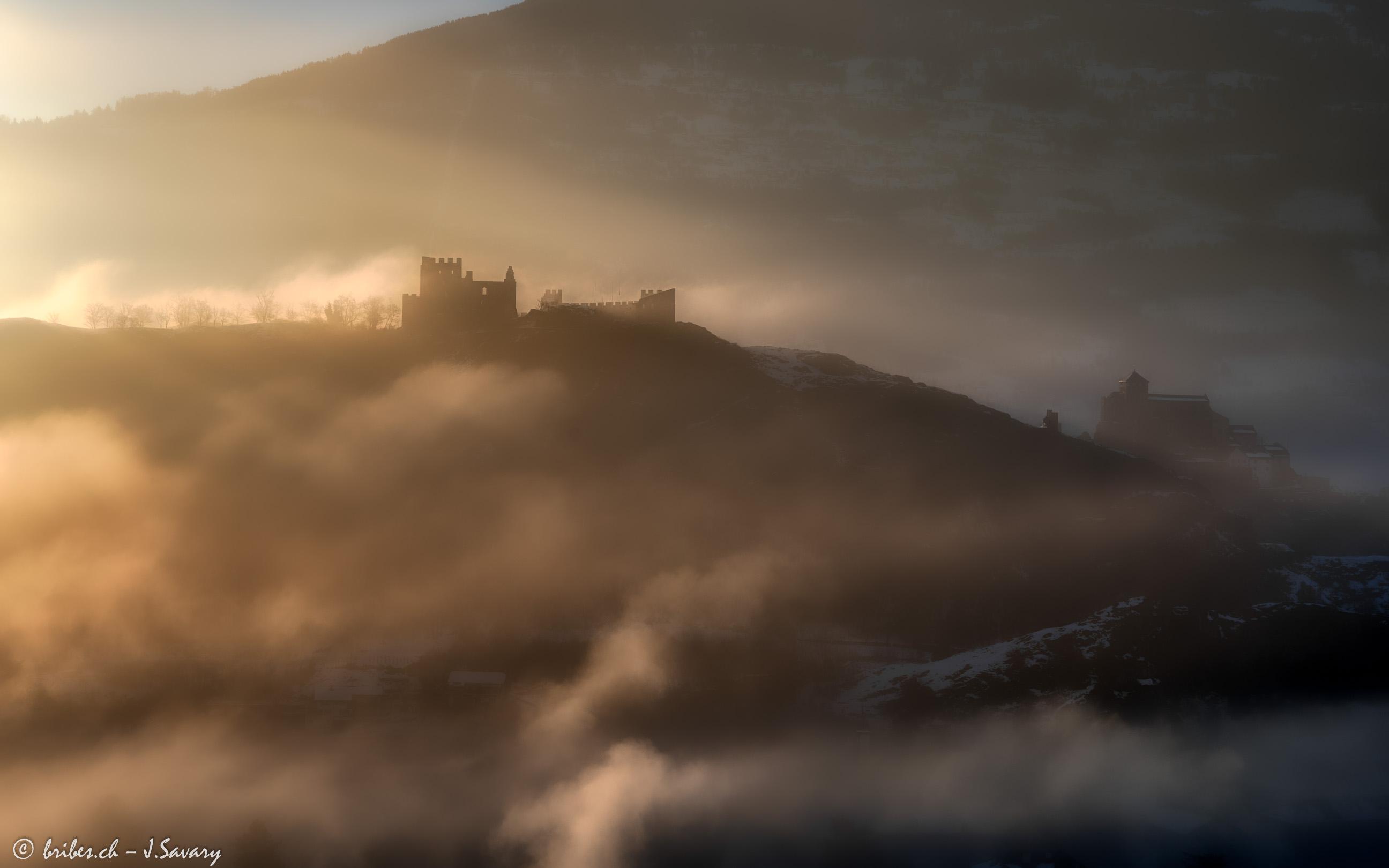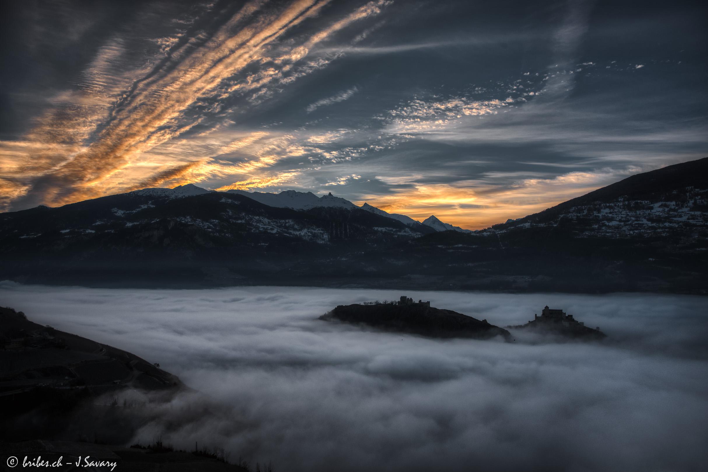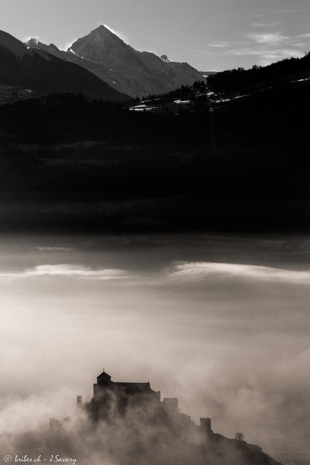 En hiver, lorsque le beau temps se rétablit sur les Alpes avec une forte bise sur le plateau suisse, un brouillard se forme en fond de vallée. Epais de 50 à 100 m, il laisse juste émerger les collines de Sion, Valère (la basilique) et Tourbillon (le château).
