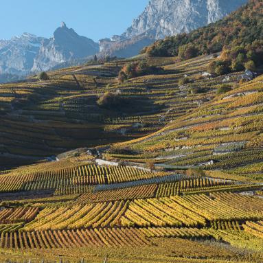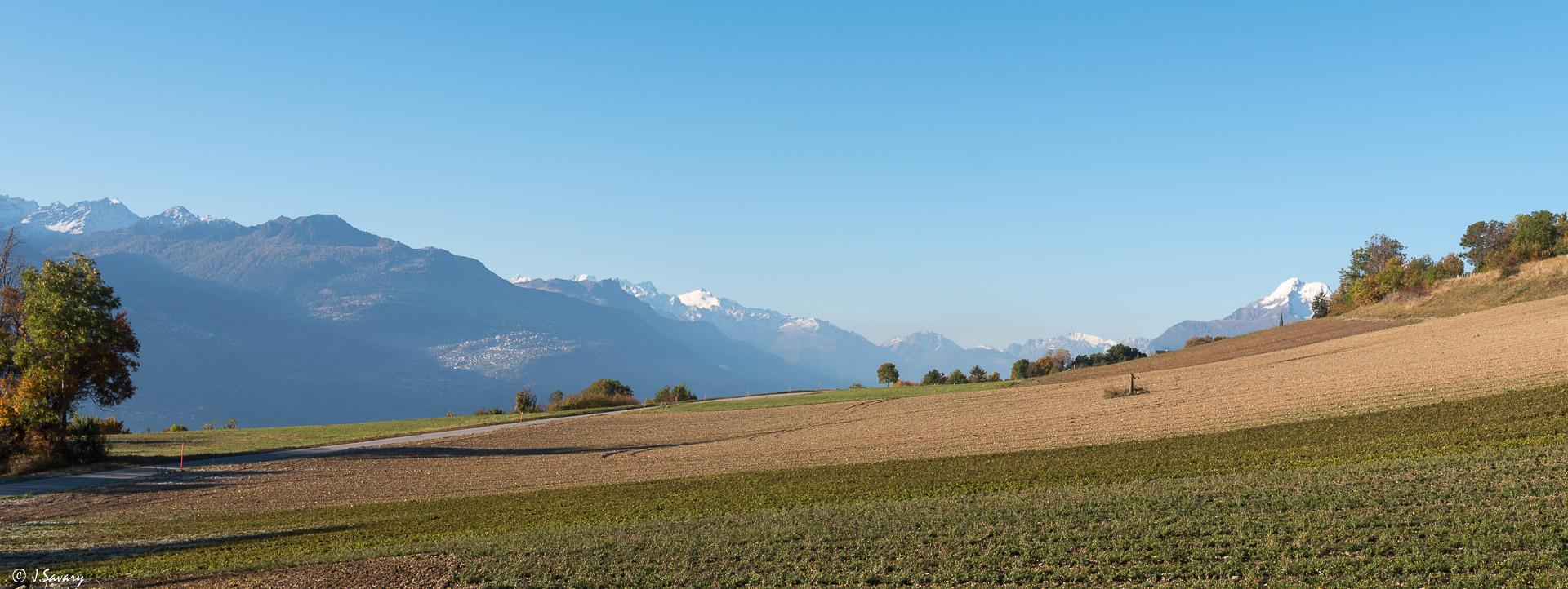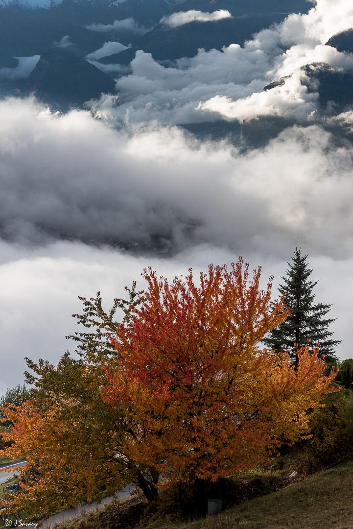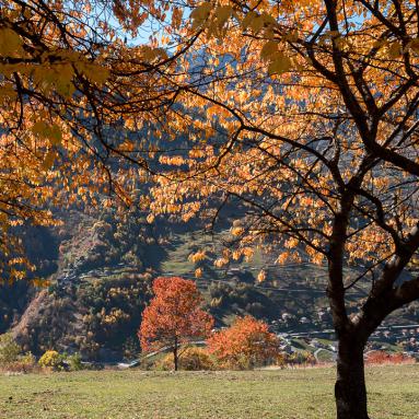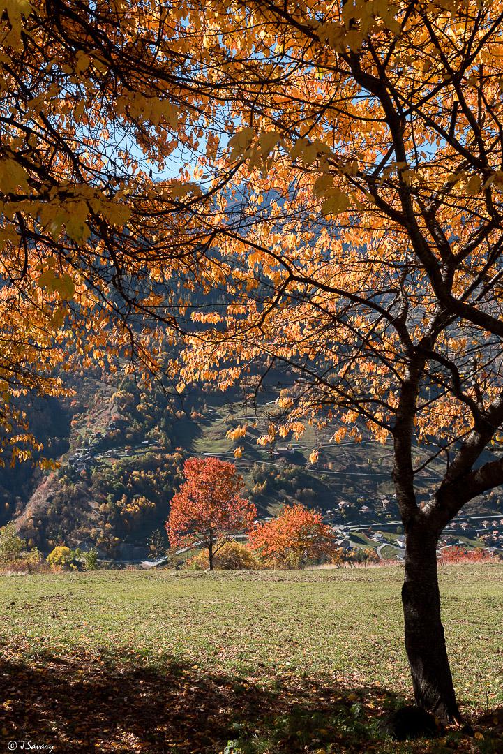 L'automne 2016 fut particulièrement somptueux avec les cerisiers incandescents. Les vignes ont déployé toutes les nuances du vert au bordeaux en passant par le jaune et l'orange. Les montagnes portent des écharpes de mélèzes dorés contrastant avec le vert sombre des sapins.